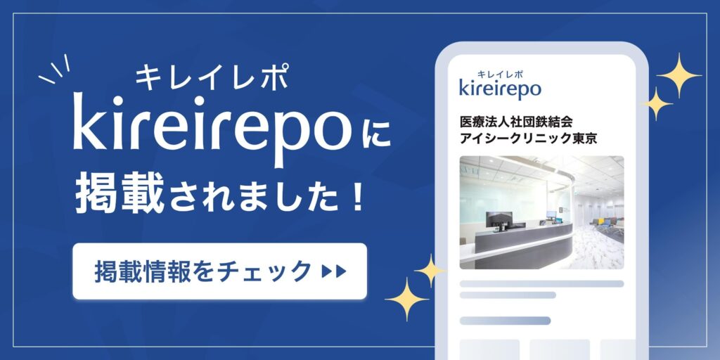 医療法人社団鉄結会アイシークリニック東京院がキレイレポに掲載されました 2026.04.14 この度、医療法人社団鉄結会アイシークリニック東京院が美容医療(自由診療・審美歯科)のプラットフォーム キレイレポに掲載されました。 時間外対応加算について 前の記事