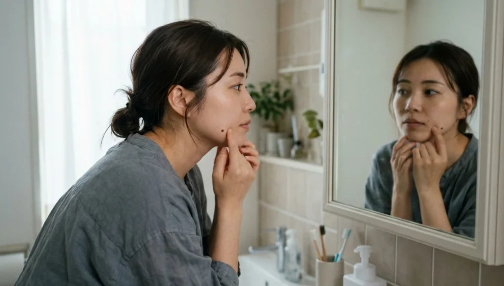 ãŸããç®å°»ãé¡ã«ã§ãã衚æ ãžã¯ã¯ãé·å¹Žã®è¡šæ ã®åãã«ãã£ãŠç®èãç¹°ãè¿ãæããããŸããããšã§åœ¢æãããŸãã也ç¥ã«ããå°ããã¯æ¯èŒçæµ ããã®ãå€ããä¿æ¹¿ã±ã¢ã§äžæçã«ç®ç«ããªããªãããšããããŸãããå 霢ã玫å€ç·ã«ããæ·±ãã·ã¯ã¯ã¹ãã³ã±ã¢ã ãã§ã¯æ¹åãé£ããã®ãçŸå®ã§ãã