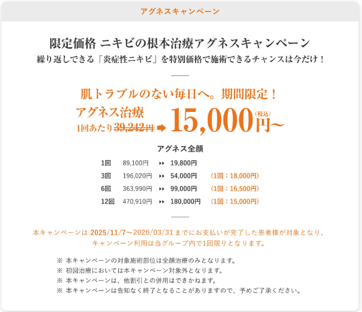| 治療料金 | ニキビの料金表にてご確認ください |