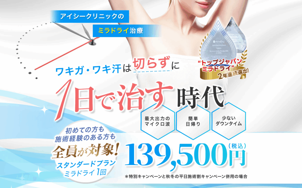 アイシークリニック東京院の切らない多汗症・ワキガ治療「ミラドライ」