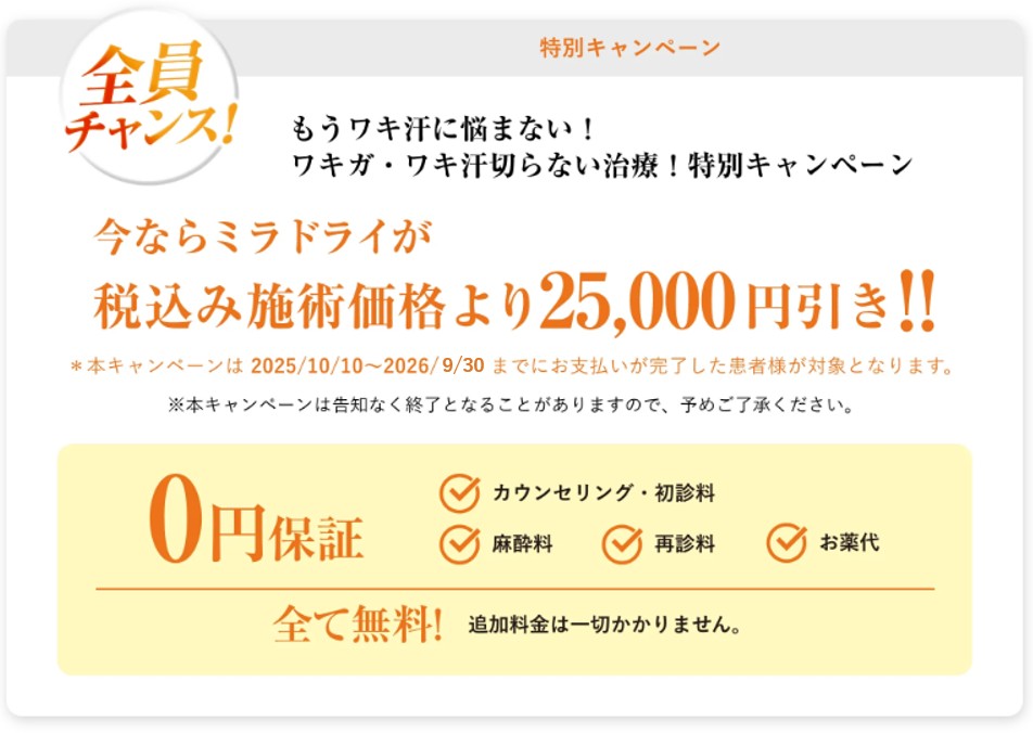 軽度~中度であれば、ミラドライでの治療が体への負担も少なくおすすめです。