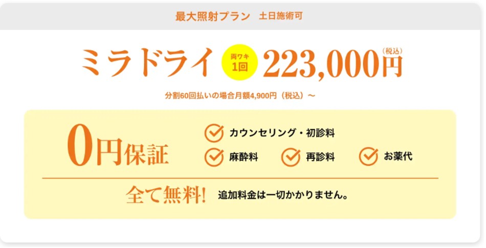 ミラドライは痛みも少なく、半永久的な効果が期待できる今注目の治療方法です。